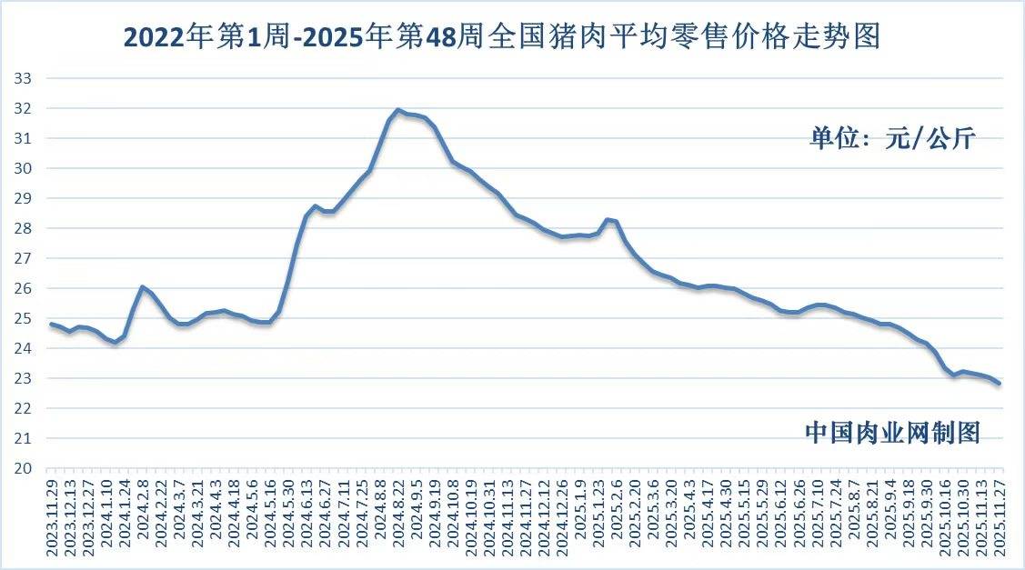 猪肉零售全国平均价走势图
