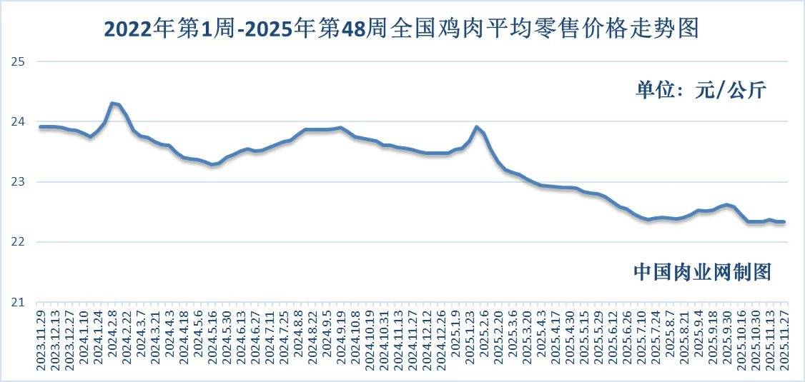 鸡肉零售全国平均价走势图