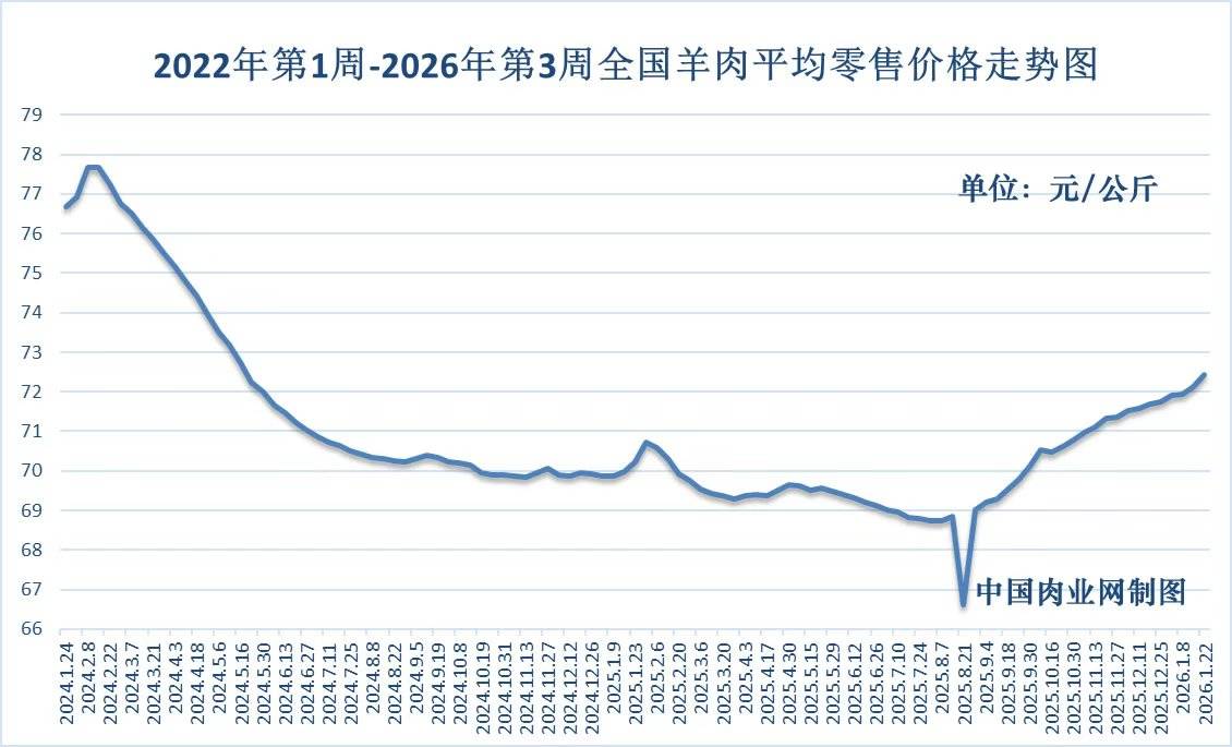 羊肉零售全国平均价走势图