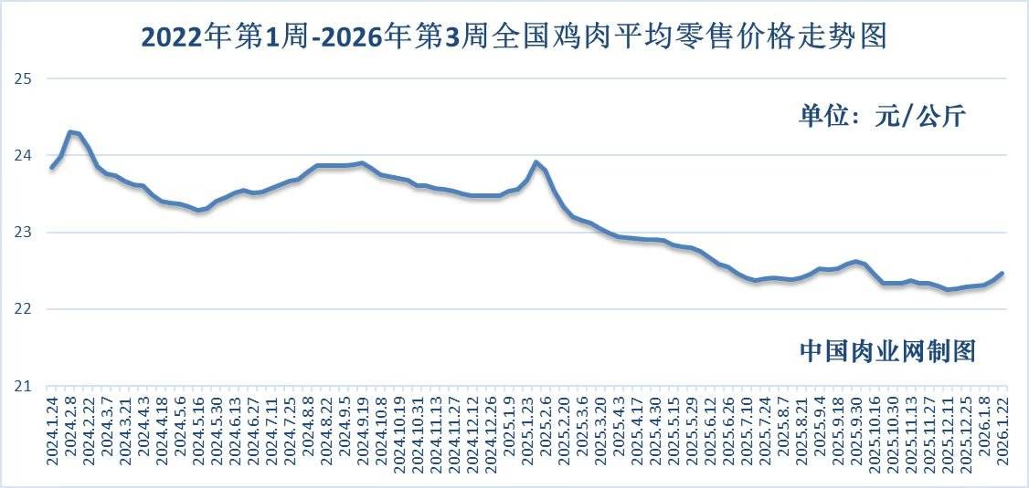 鸡肉零售全国平均价走势图