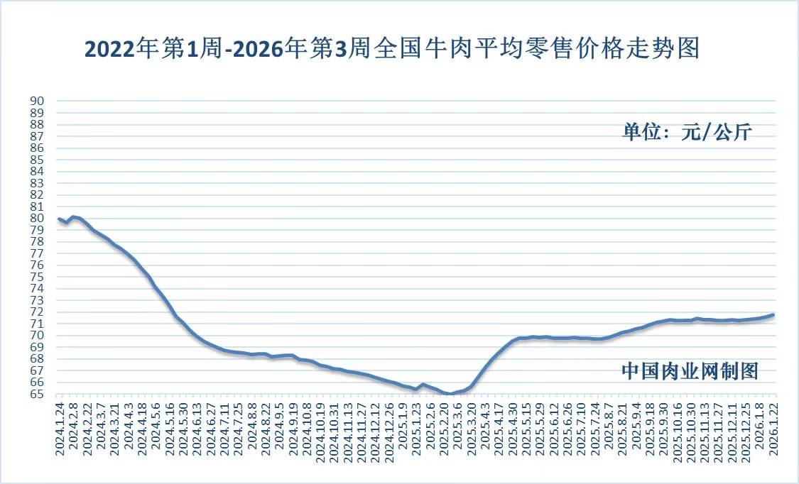 牛肉零售全国平均价走势图