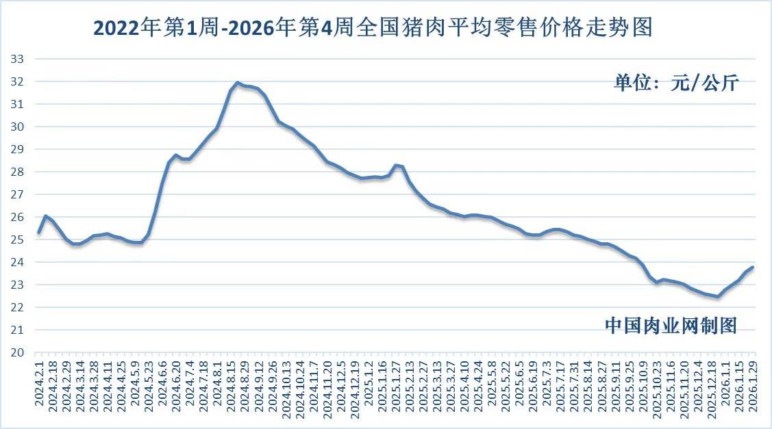 猪肉零售全国平均价走势图