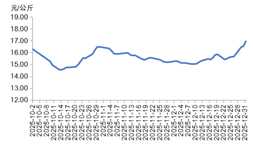 本月,四川猪肉月均价每公斤15.89元,环比上涨2.3%,同比下跌29.1%,较上月跌幅收窄2.0个百分点。本地区规模养殖场和散养户出栏节奏正常,冬至后外省调入川内的生猪数量减少,生猪及猪肉供应略有减少;四川地区腌腊活动进入高峰期,乡镇地区猪肉消费明显增加,批发市场上猪肉购销速度加快,叠加冬至、元旦备货提振,支撑猪肉价格上涨。